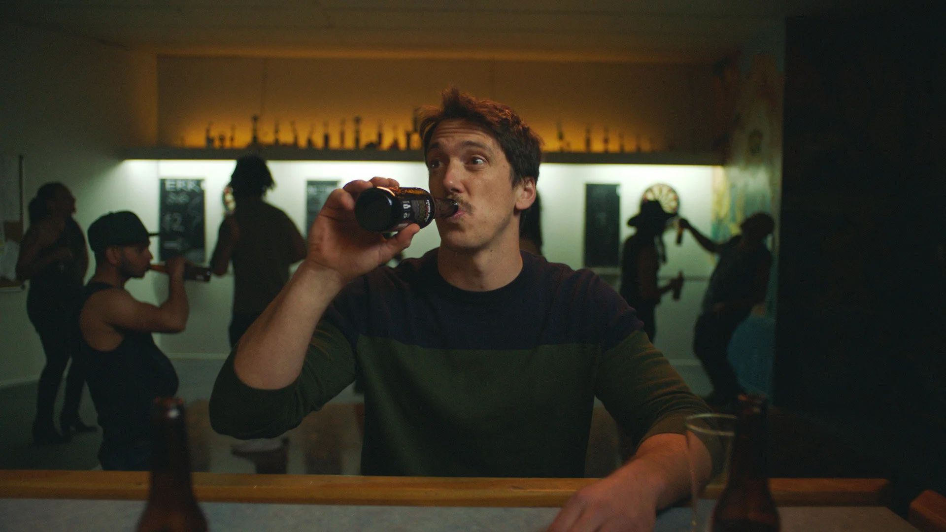 Eight different lads out on the piss. Multiple adventures. Stitched. Together. Via. Single. Words. Their paralleled banter and antics combine together into a single narrative, following them as they each tread an all-too-familiar arc: drinking, then driving, then getting snapped. Fifteen second videos give deeper snapshots into each of the lads’ nights. No matter the mischief, they all end the same — busted.